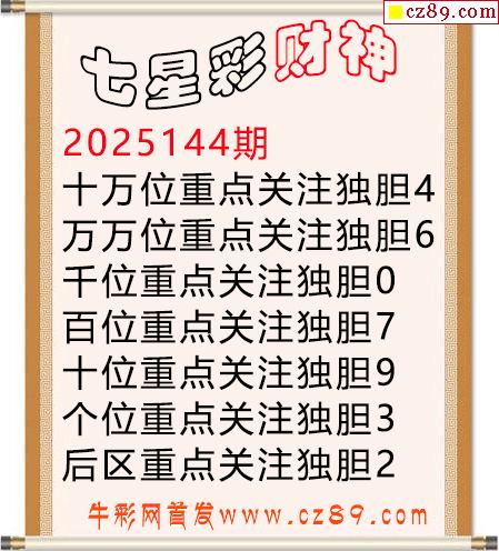 25年体彩七星彩144期 沫沫东定位号码推荐